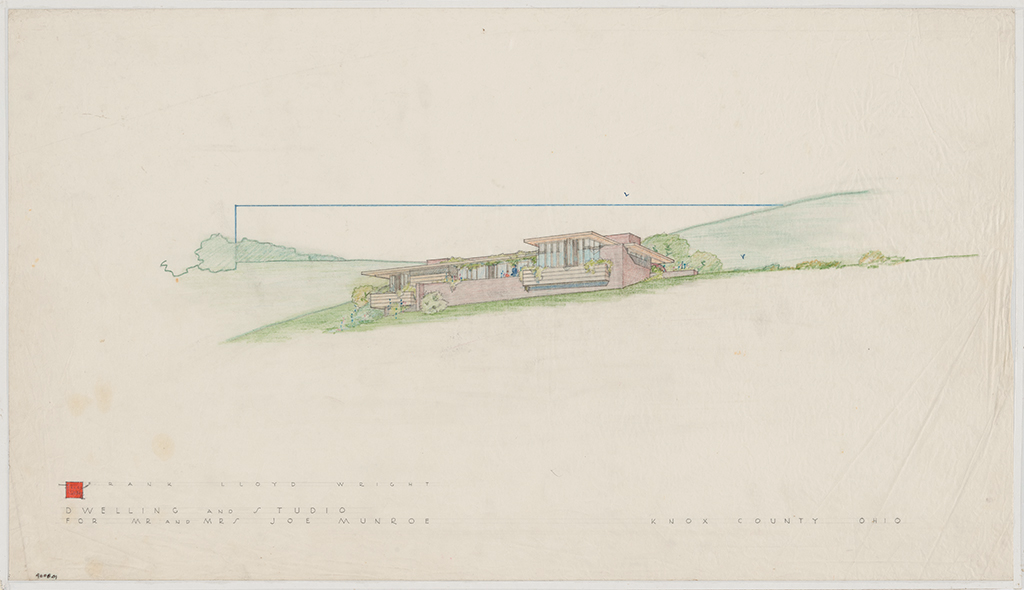 Project 4608: Joe and Virginia Munroe house and studio (Knox County, Ohio). Unbuilt Project. View. The Frank Lloyd Wright Foundation Archives (The Museum of Modern Art/Avery Architectural & Fine Arts Library, Columbia University, New York)