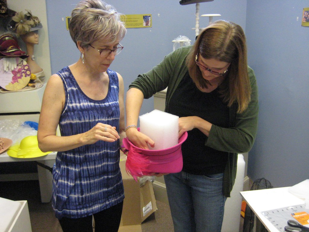In 2014 the Mighty Rescue Crew visited the Griot Museum of Black History on Monday, July 14 during the St. Louis AMM conference. MRC volunteers created almost 20 archival mounts for a variety of hats in the Griot Museum’s permanent collection.